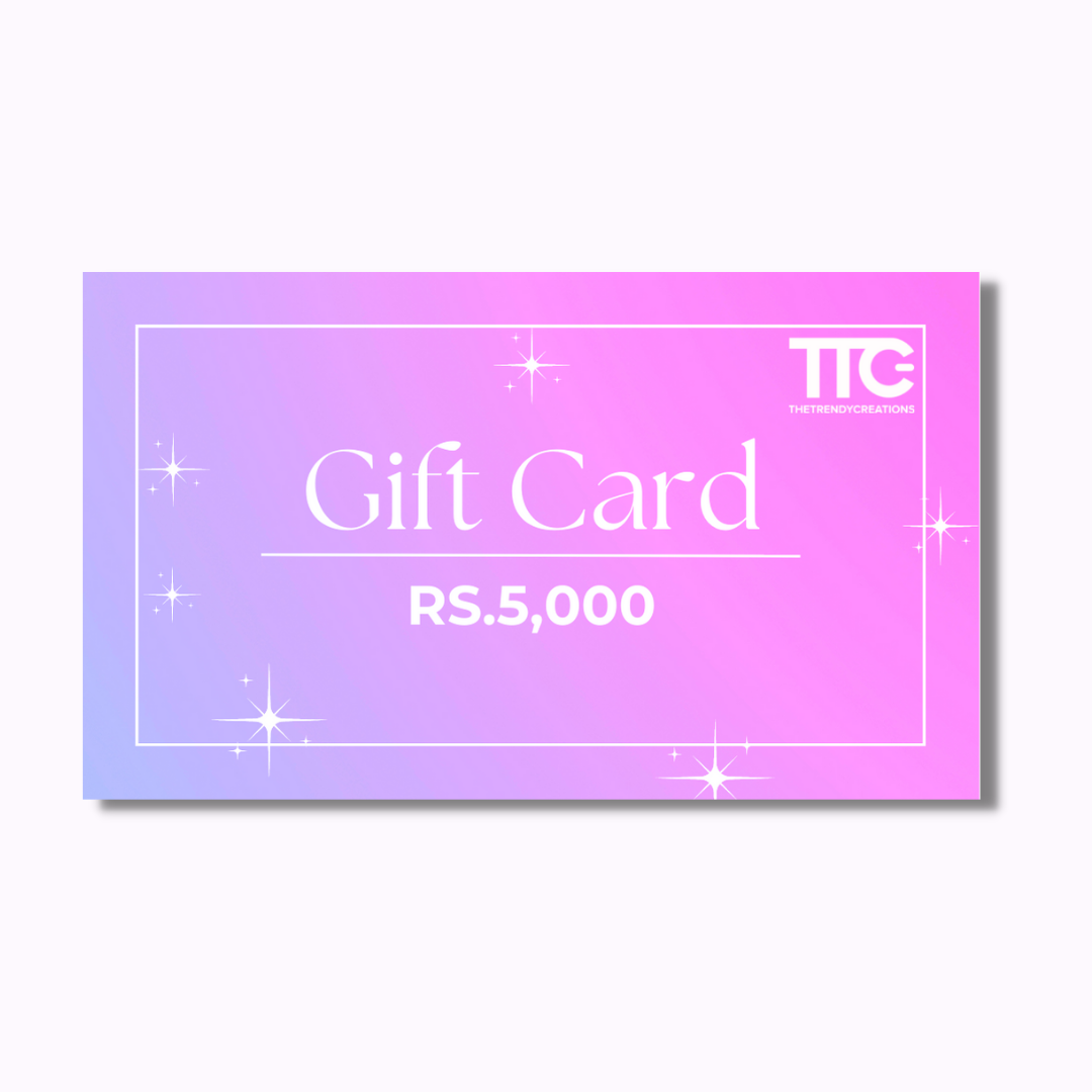 Whether it's a birthday, graduation, wedding, or any other occasion, treat yourself or someone special in your life with a The Trendy Creations Gift Card. Currently, we are offering Rs.5,000 , Rs.10,000, Rs.15,000, Rs.20,000 E-Gift Cards.